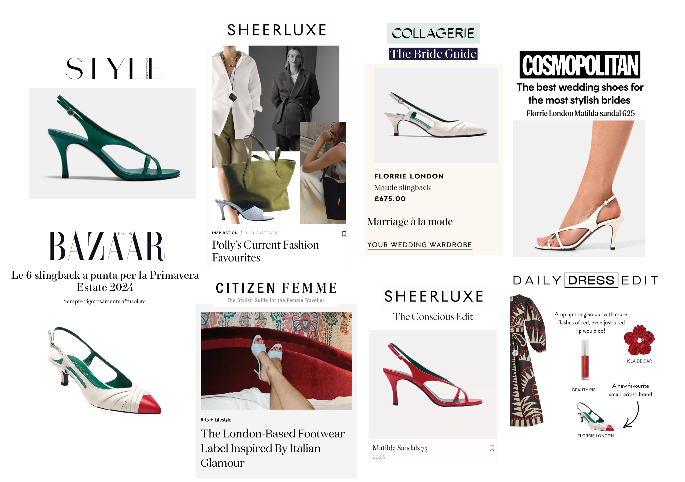 Trust Collagerie and Cosmopolitan to get you down the aisle in style. Both point to Florrie for the most stylish wedding shoes. The Sunday Times Style call our shoes sexy and comfortable. But we are most proud of making it into the Sheerluxe Conscious Fashion Edit for our sustainable production methods and use of up-cycled materials. We aim to build sustainability into every aspect of our brand.